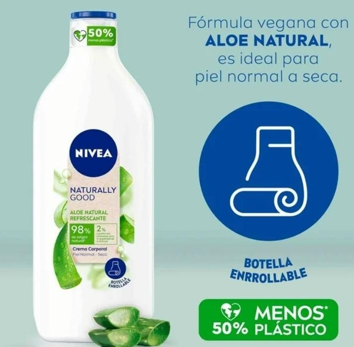Crema Corporal Aloe Refrescante. Desarrollada pensando en piel normal – seca, pues además de humectar hasta por 48h, gracias a su fórmula con Serum Humectación Profunda con exctracto de Aloe, se absorbe rápidamente dejando la piel fresca, reconfortada y con un agradable aroma.