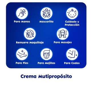 Si lo que buscas es una piel suave, tersa y uniforme, entonces lo que necesitas es NIVEA Creme, la crema humectante universal para el cuidado de todo tipo de piel. Esta crema multipropósito posee una fórmula que humecta, nutre y protege intensamente la piel para evitar sensación de resequedad y aspereza. NIVEA Creme, enriquecida con ingredientes de conocida eficacia tales como Pantenol, Eucerit y Glicerina, brindan una protección intensiva, sin importar si tienes la piel seca, erupciones invernales, irritación, mejillas resecas o manos agrietadas. Testeada dermatológicamente y de compatibilidad cutánea aprobada, está diseñada para todo tipo de piel y puede aplicarse en todo el cuerpo cuando más necesites humectación. Este producto para el cuidado de la piel es tan versátil que puedes usarlo para el cuerpo, las manos, el rostro, los pies y hasta para retirar el maquillaje. Un elemento básico para cualquier hogar y de uso diario.
