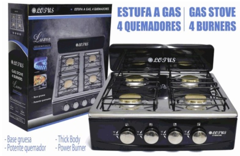 Estufa a gas 4 quemadores Lotus con respaldo