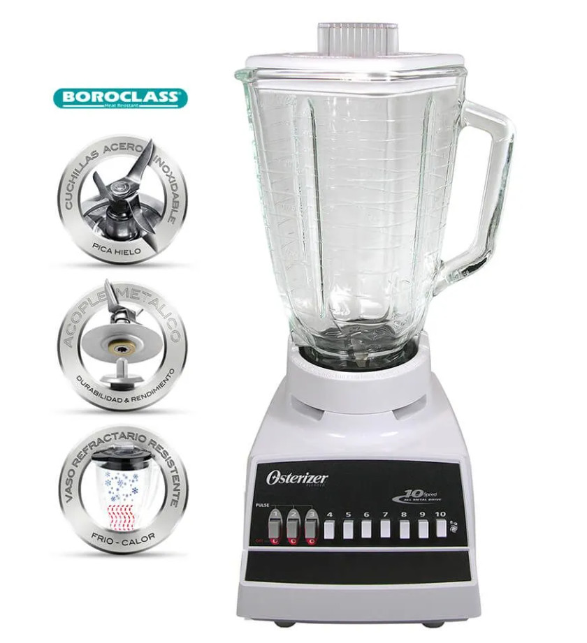 LICUADORA OSTER BLANCA 10 VELOCIDADES JARRA DE VIDRIO 300 W 1.25Litros