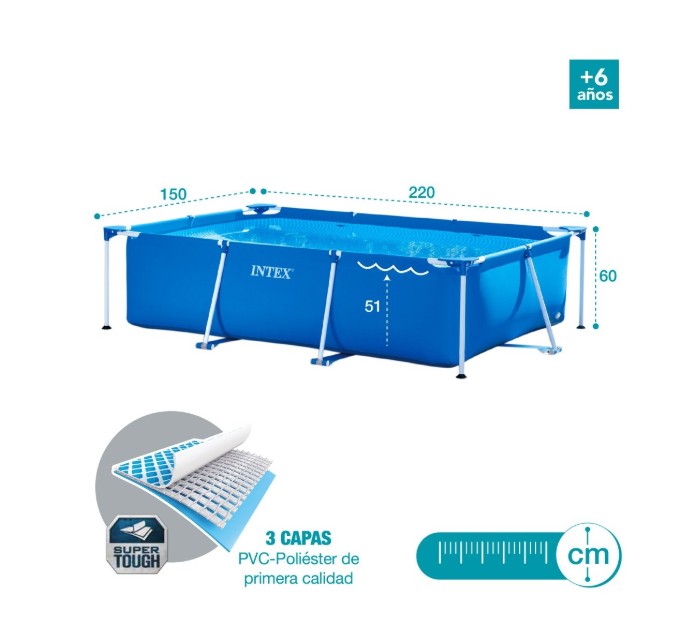 Piscina desmontable rectangular INTEX Metal 2.2 metros